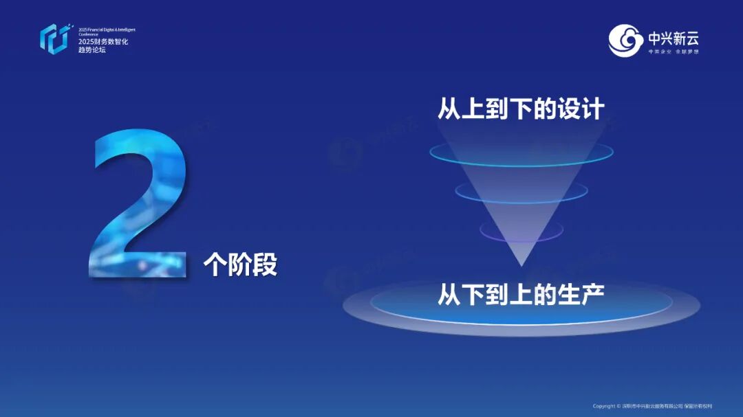 2个阶段:构建财务数据价值链,需经历“从上至下设计”与“从下至上生产”两个阶段;