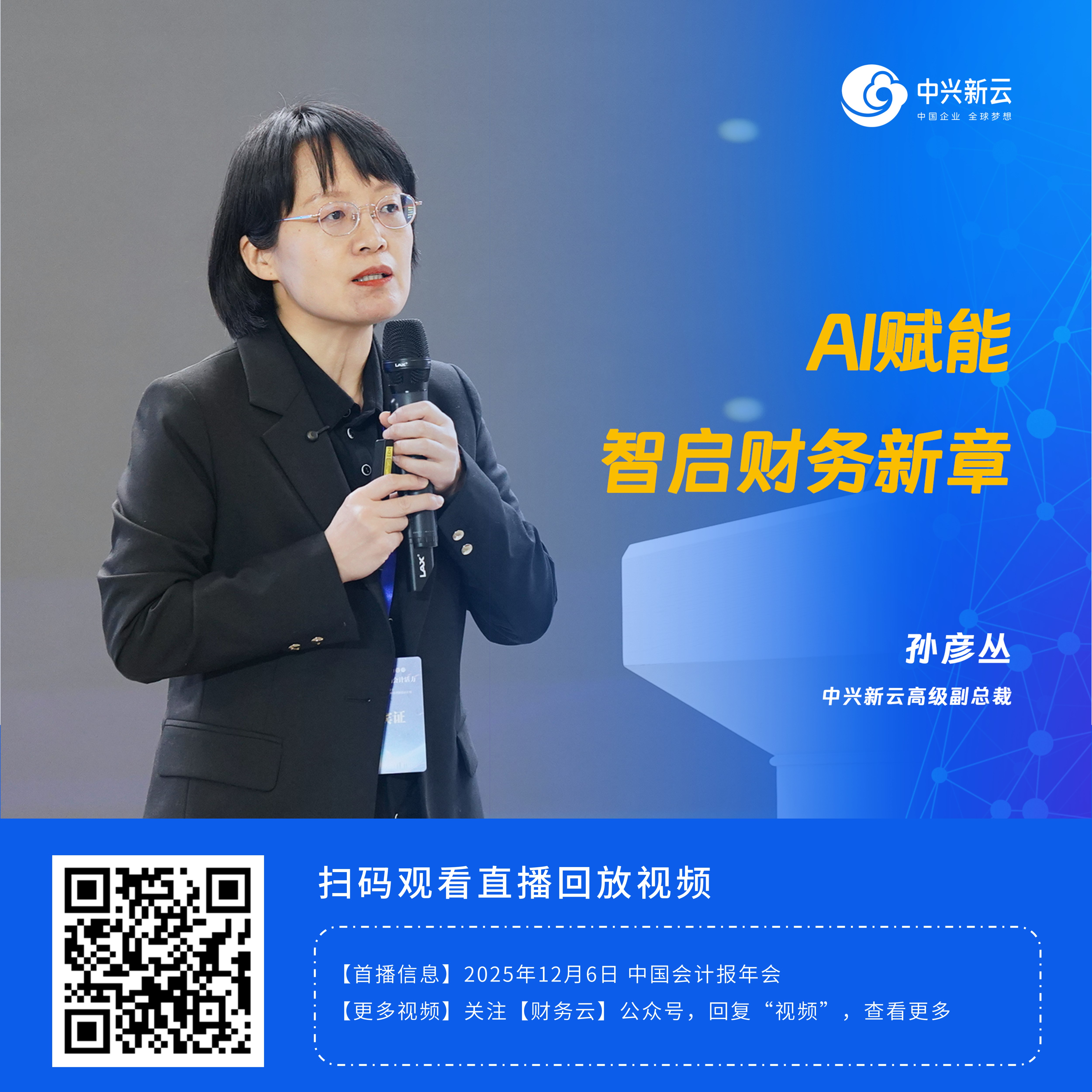 中兴新云高级副总裁孙彦丛女士出席活动,并发表题为“AI赋能,智启财务新章”的主旨演讲。