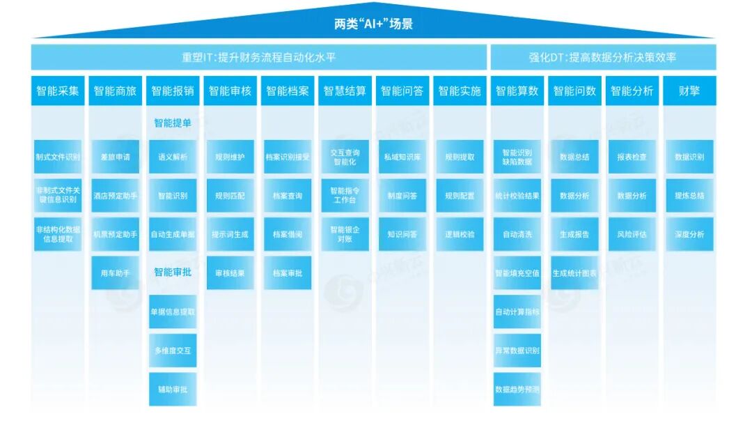 重塑IT,即提升财务流程自动化水平:通过智能采集、智能报销、智能审核、智能档案等应用,以智能交互与自动化能力强化流程支撑;强化DT,即提高数据分析决策效率:依托大模型技术实现智能算数、智能问数、智能分析、财擎等应用,降低数据使用门槛,为企业提供深度洞察与决策支持。