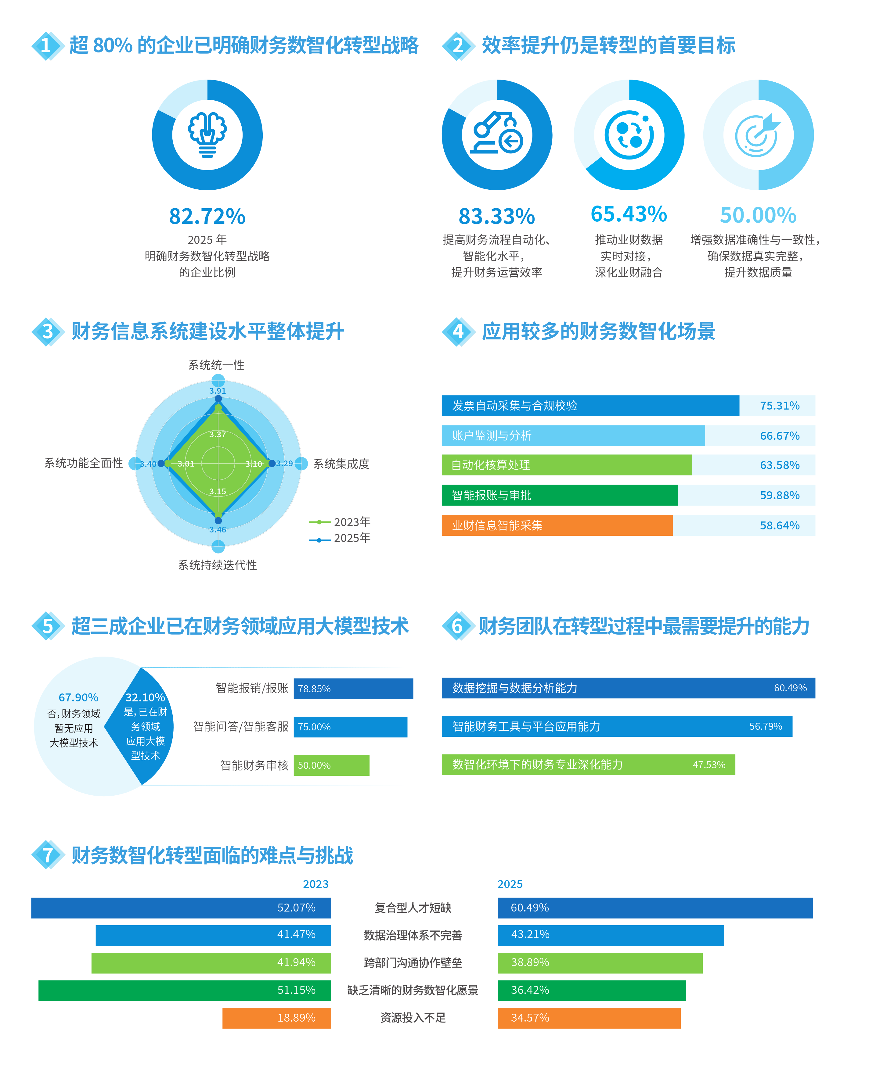 本次调研发现,中国企业财务数智化转型持续深化,其中值得关注的要点如下: