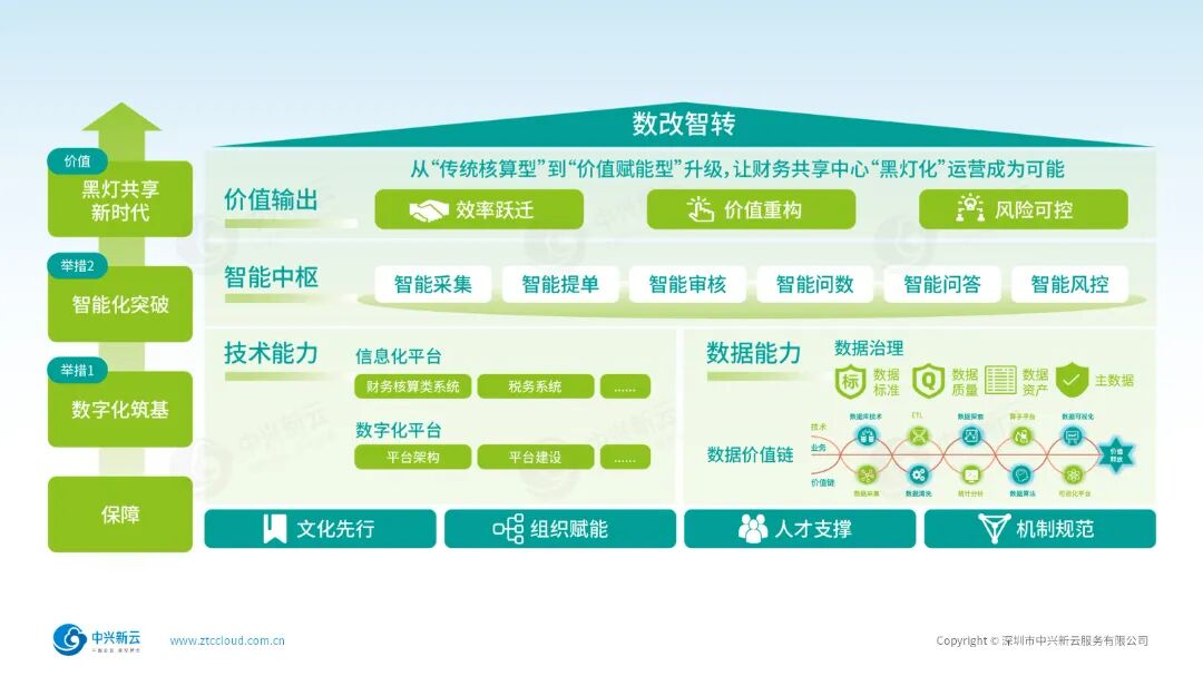 作为财务共享服务的长期推动者,中兴新云积极响应国家数智化发展战略,以“数智驱动财务共享高质量建设”为核心方向,整合全周期咨询服务、全场景系统产品能力,为企业提供“咨询 + 产品”一体化解决方案,助力企业构建合规高效、风险可控、价值创造的新型财务管理体系,真正实现财务共享从“成本中心”到“价值中心”的跨越。