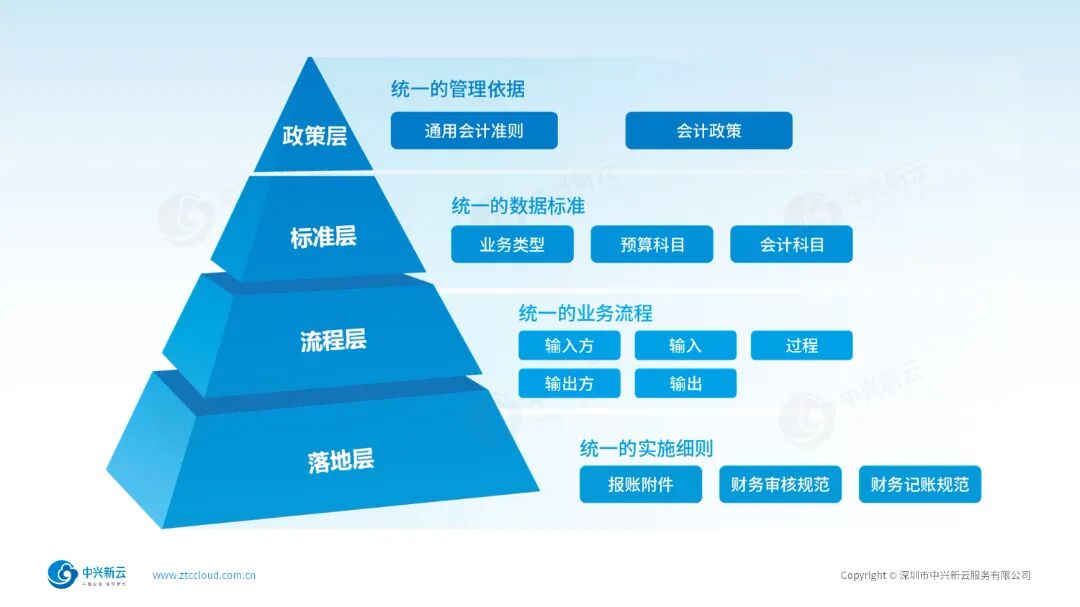 中兴新云将标准化理念贯穿财务核算全流程。以财务作为信息沉淀核心部门,实现信息采集、加工、传递的全流程标准化作业。通过统一会计政策、优化会计科目、明确业务类型等举措,构建规范统一的财务核算标准体系,夯实数据治理根基,助力企业达成加强统一管控、提升核算效率、强化业财协同、推动数据治理、支持经营决策的建设目标。