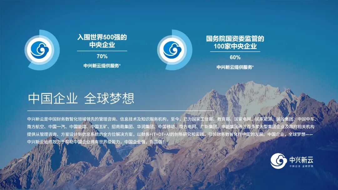 目前,中兴新云是国内唯一基于自身全球共享实践及数智化转型经验,持续对外输出系统方法论与技术服务的专业机构。依托“财务+IT+DT+AI”四维融合能力与领先的系统架构,在市场中树立了显著的竞争优势:在世界500强中央企业中,服务覆盖超70%;在国务院国资委监管的百家央企中,合作比例近60%。中兴新云已成为众多领军企业建设财务共享与数智化转型的长期信赖伙伴。