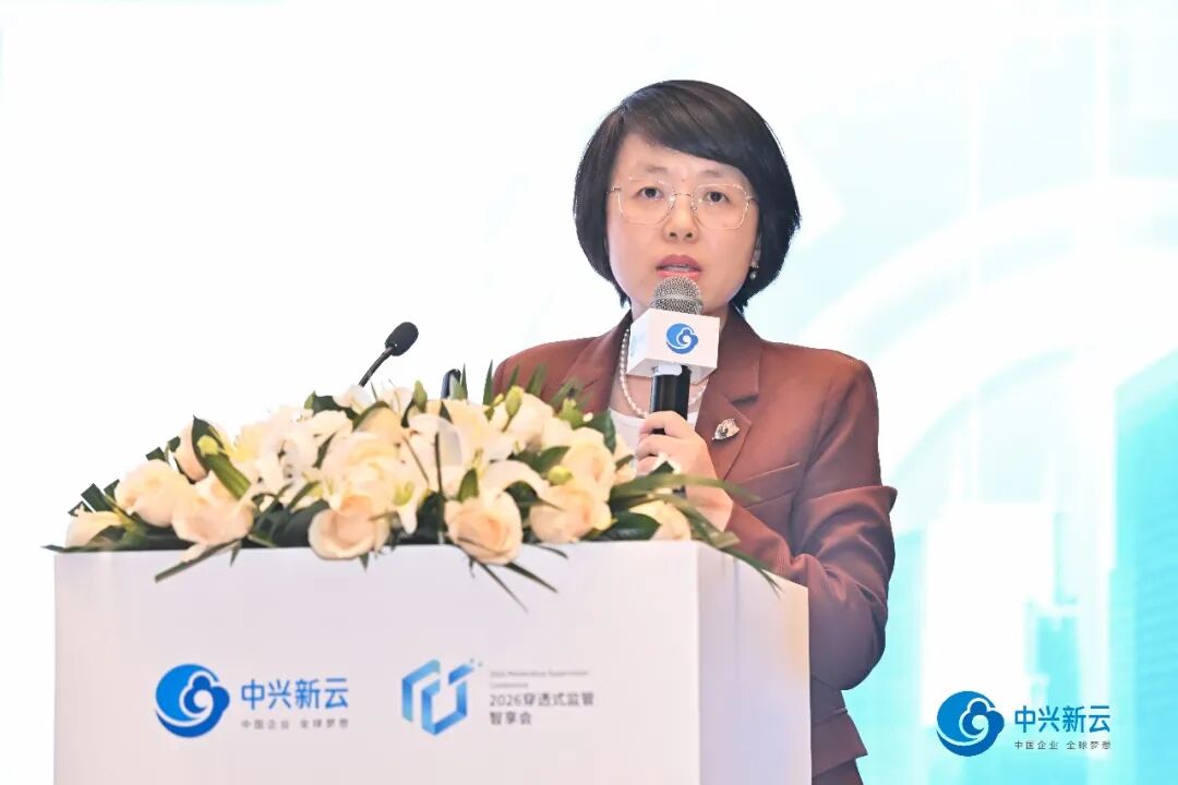 中兴新云高级副总裁郭奕以《以穿透强监管,以数智促转型》为题,分享了国资国企穿透式监管的政策背景、核心要求与体系建设路径。她提到,2026年是十五五规划开局之年,穿透式监管是深化国资国企改革的重点任务。她深入阐释了穿透式监管框架体系的建设要点,明确DRP系统与穿透式监管系统是支撑载体与监管应用的关系,建设过程需遵循“四个统一”原则,通过打造集团化模型工厂、完善五大中心,实现数据沉淀、模型落地与风险闭环,全面助力企业财务数智化转型升级。